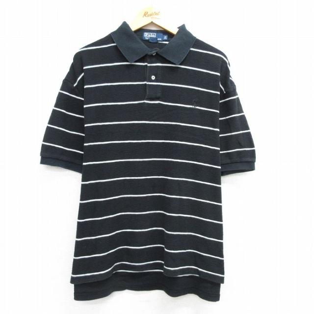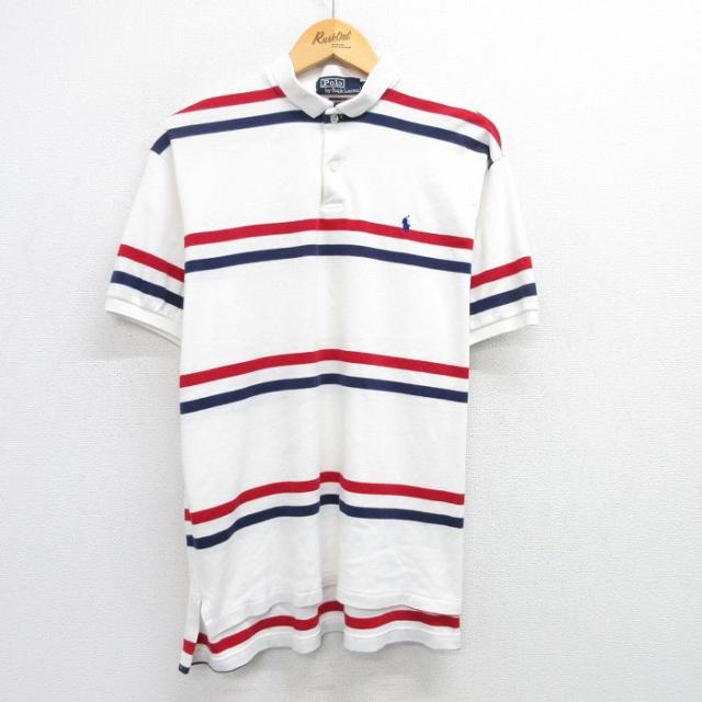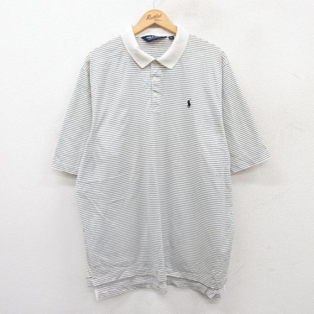 【商品名】 XL★古着 ラルフローレン ポロゴルフ 半袖 ブランド ポロ シャツ メンズ 90年代 90s 大きいサイズ コットン 白他 ボーダー