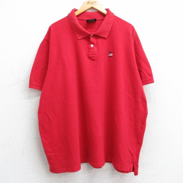 【商品名】 XL★古着 ラルフローレン ポロジーンズ 半袖 ブランド ポロ シャツ メンズ 90年代 90s ワンポイントロゴ 鹿の子 大きいサイズ コットン USA製 赤