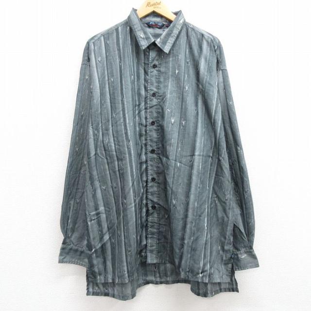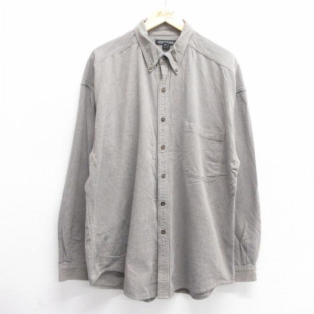 古着 長袖 シャツ メンズ グレー XLサイズ 中古 トップス 中古 古着