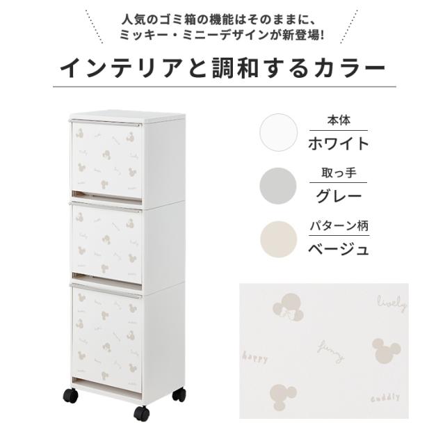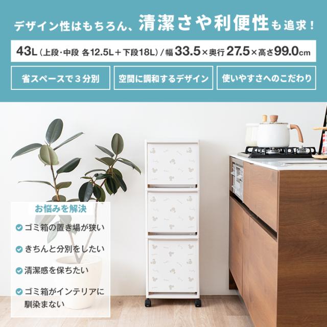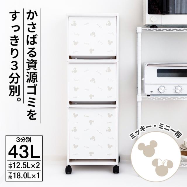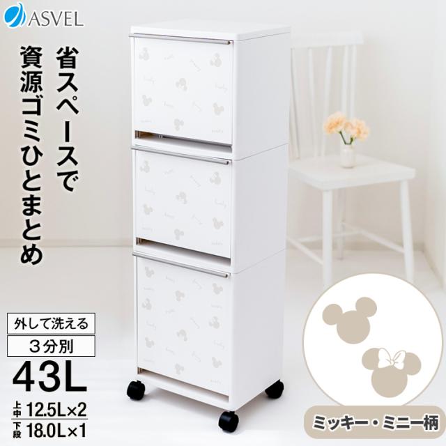 ゴミ箱 おしゃれ キッチン 分別 ディズニー DISNEY ミッキー ミニー ワゴン 3段 43リットル アスベル 3分別 縦型 蓋付き 資源ゴミ ごみ箱