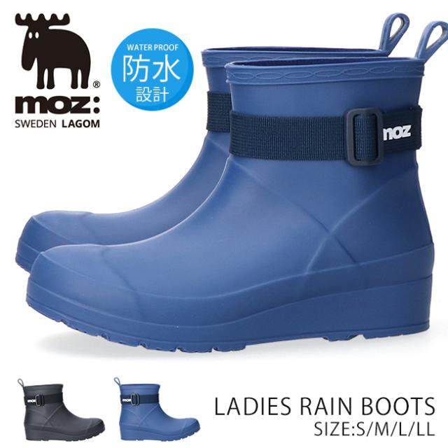 モズ moz レインブーツ レディース ショート 履きやすい 歩きやすい 滑らない 疲れない 痛くない 蒸れない プルタブ防水 防滑 軽量 軽い 柔らかい おしゃれ かわいい ベルト 完全防水 長靴 MZ-8041 雨 通勤 通学 レインシューズ 靴