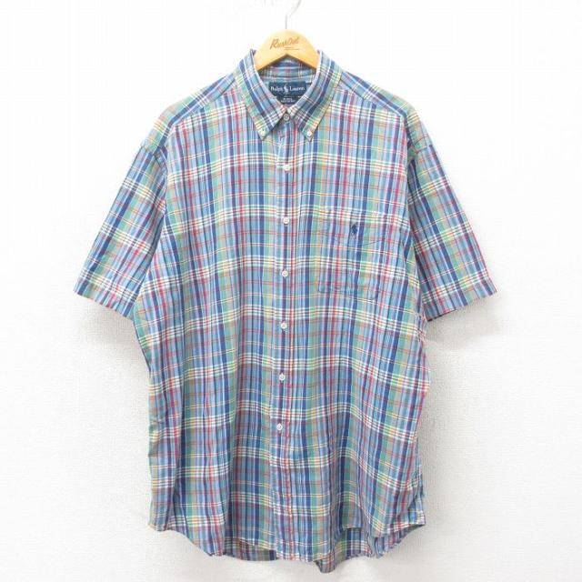 【商品名】 XL★古着 ラルフローレン チャップス 半袖 ブランド シャツ メンズ 90年代 90s ボタンダウン 赤他 チェック