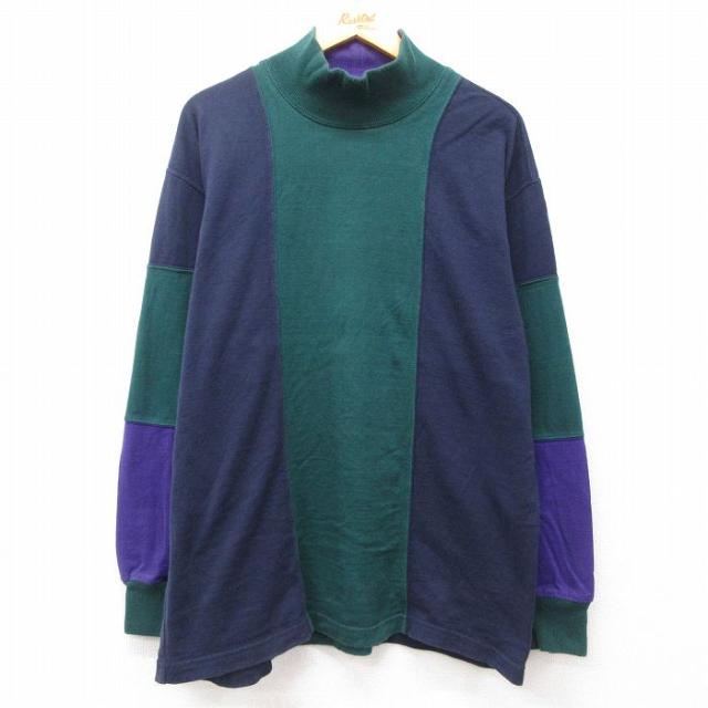 古着 長袖 ビンテージ Tシャツ メンズ 90年代 90s ブレイクリーアイランド 刺繍 コットン モックネック ハイネック USA製 黒 中古 古着