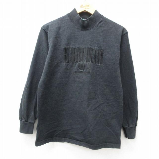 【商品名】 S★古着 長袖 ビンテージ Tシャツ メンズ 90年代 90s ブレイクリーアイランド 刺繍 コットン モックネック ハイネック USA製 黒