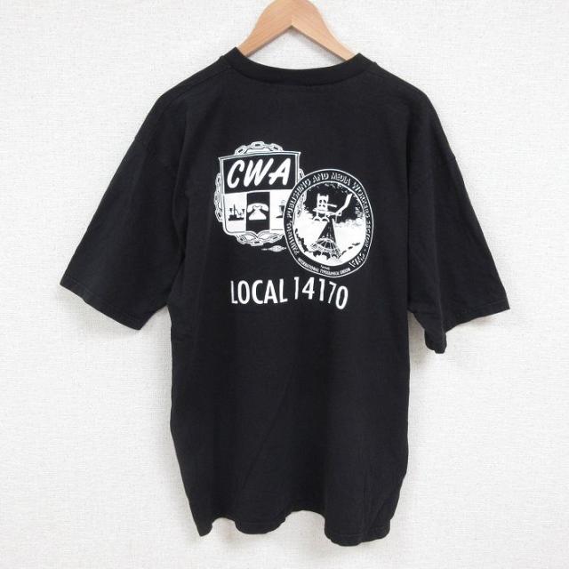 古着 半袖 ビンテージ Tシャツ メンズ 00年代 00sトロフィー 大きいサイズ コットン クルーネック 黒 ブラック XLサイズ 中古 中古 古着