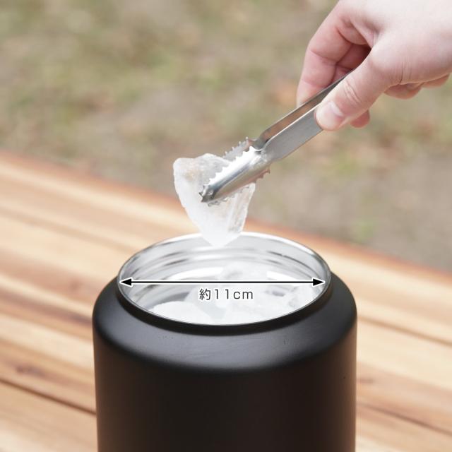 市販のロック氷が約2kg入ります。広口設計なので、袋から氷を移し替えるのもラクにでき、使うときも取り出しやすいです。