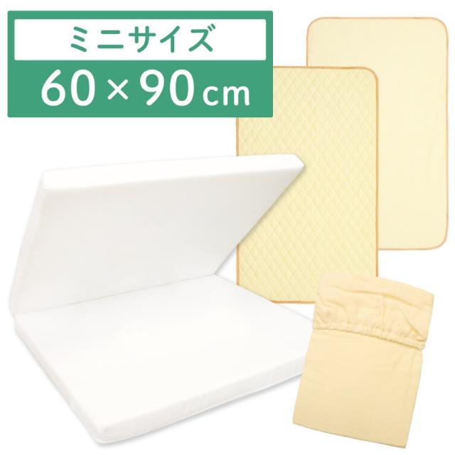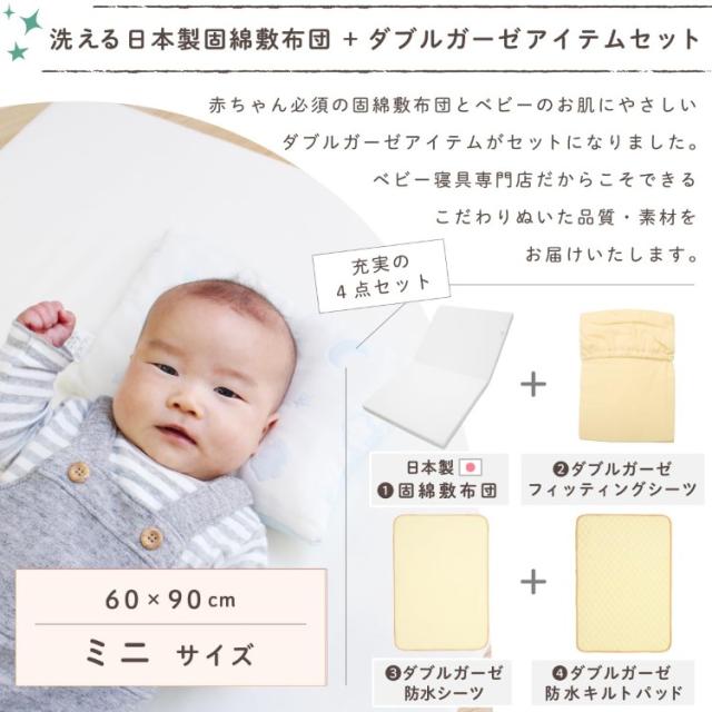 【日本製】固綿敷布団 +ダブルガーゼ3点セット 60×90cm 2つ折タイプ 厚み5cm 防水シーツ キルトパッド シーツ 無地 ベビーベッド マットレス 新品 新生児
