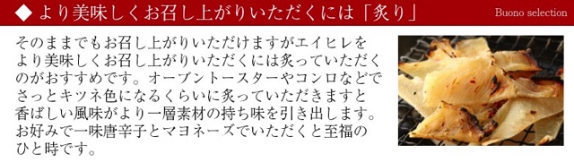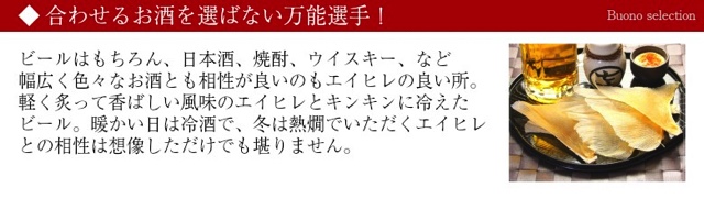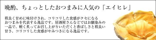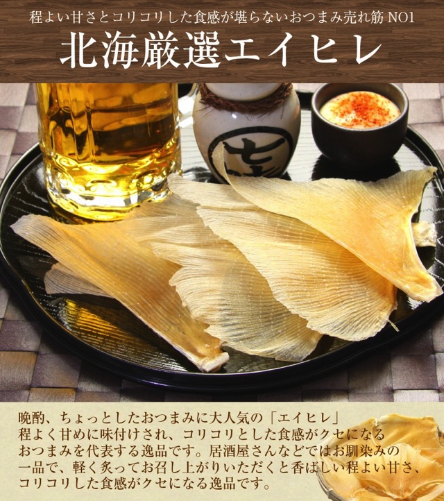 【原材料名】エイヒレ(ベトナム産)、砂糖、食塩、ソルビトール、調味料(アミノ酸)