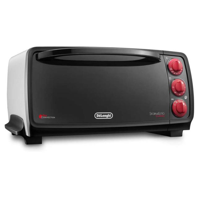 赤いつまみはデロンギ・オーブン開発当時からのデザインを踏襲。キッチンを一層スタイリッシュに彩ります。