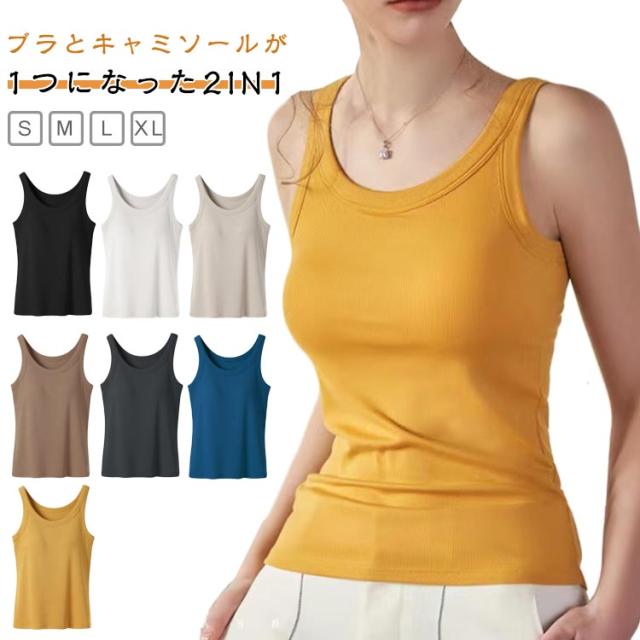 ブラトップ タンクトップ カップ付 ブラタンクトップ 無地 レディース おうち パジャマ ランニング 重な着 オシャレ ブラタンク ノンワイヤ カップ入 部屋着 リブ ルームウェア インナー 下着 大きいサイズ