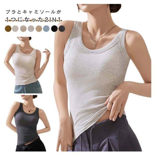 ブラトップ タンクトップ カップ付 ブラタンクトップ 無地 レディース おうち パジャマ ランニング 重な着 オシャレ ブラタンク ノンワイヤ カップ入 部屋着 リブ ルームウェア インナー 下着 大きいサイズ