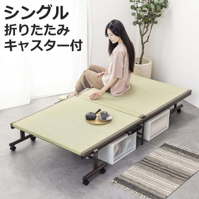 折りたたみベッド 畳ベッド シングル キャスター 収納 ( 折りたたみ ベッド 畳 畳める コンパクト 折りたたみ式 省スペース たたみ 天然い草 抗菌 調湿 消臭 )
