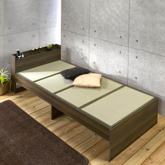 畳ベッド シングル 宮棚 2口コンセント付 ( ベッドフレーム 畳 ベッド 棚付 天然い草 たたみ 抗菌 調湿 消臭 畳マットレス 畳付 コンセント付 ブラウン ナチュラル )