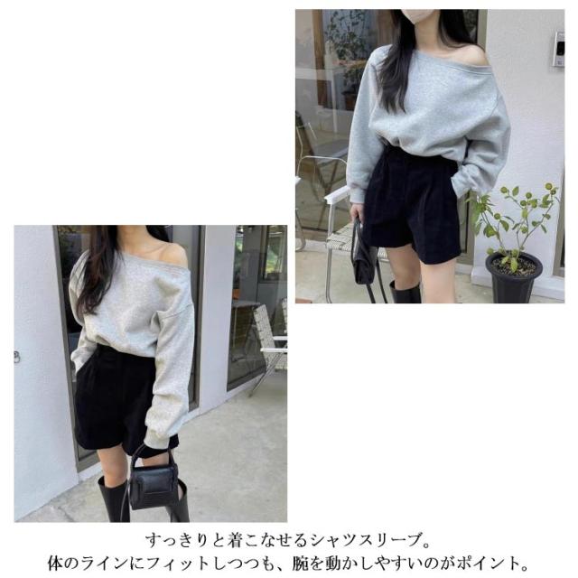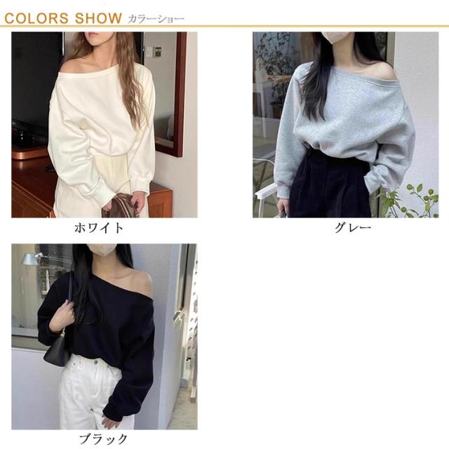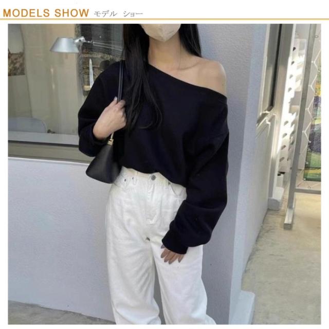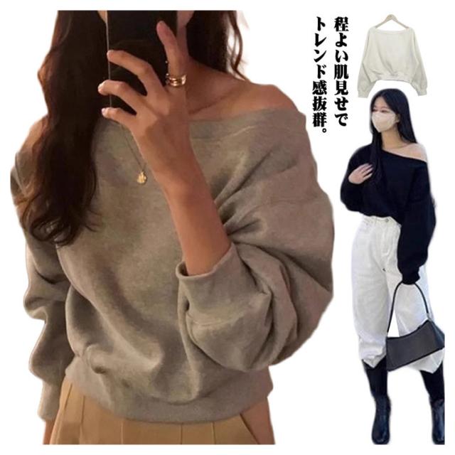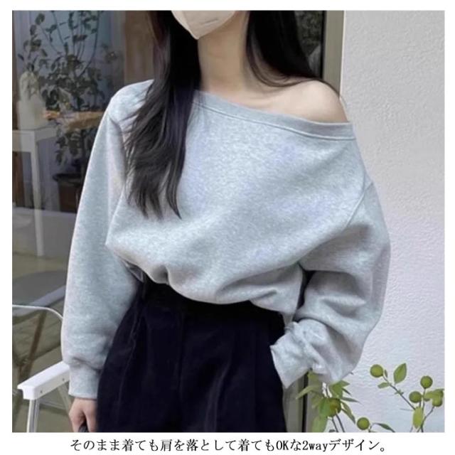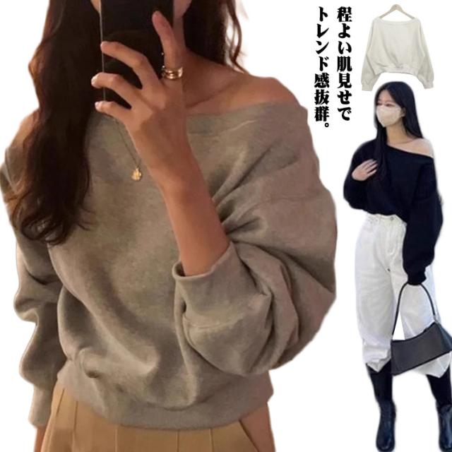 トレーナー オフショルダー レディース スウェット オフショル Tシャツ 長袖 秋冬 トップス カットソー tシャツ 無地 大人可愛い プルオーバー ワンショルトップス ゆったり シンプル カジュアル おしゃれ 通勤 普段着 日常 送料無