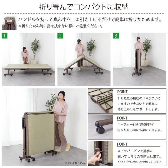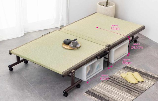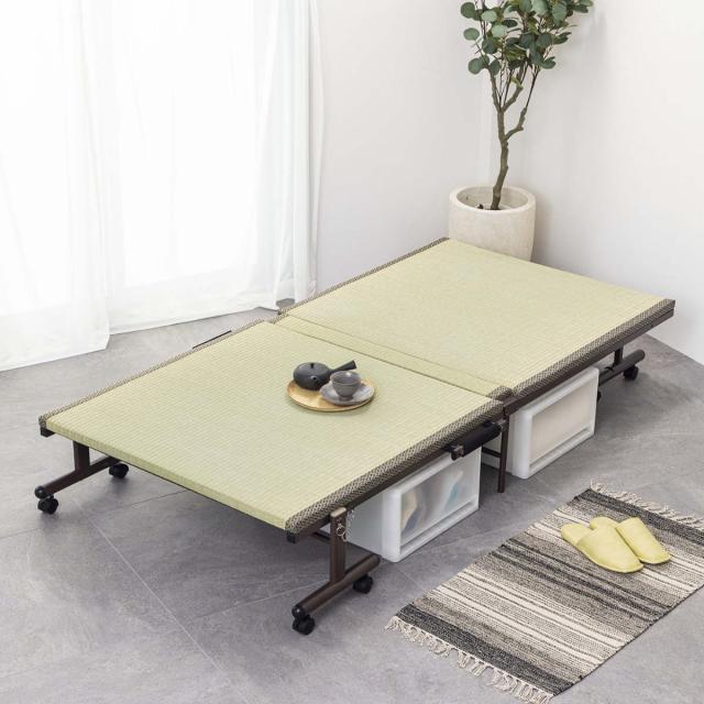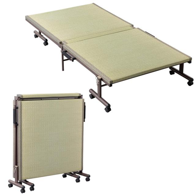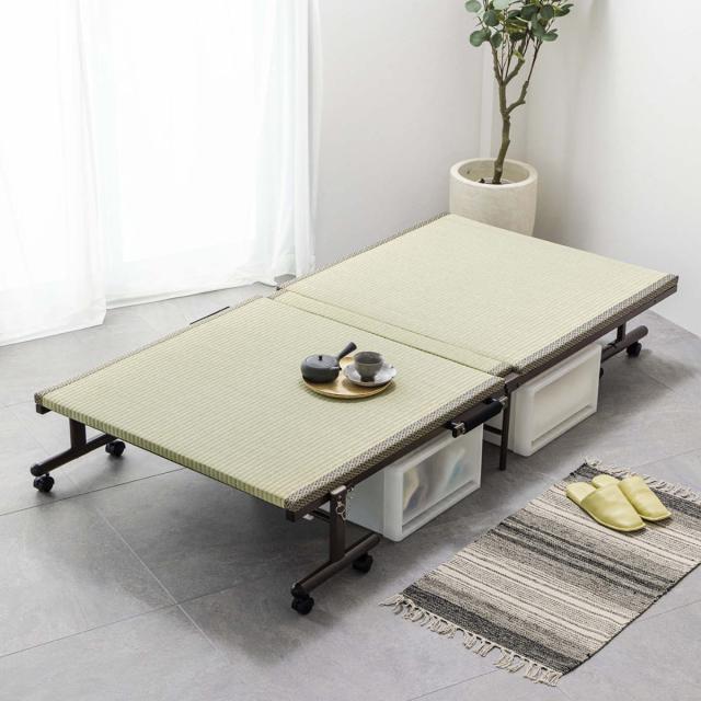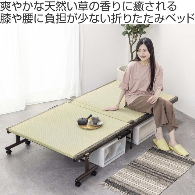 折りたたみベッド 畳ベッド シングル キャスター 収納 ( 折りたたみ ベッド 畳 畳める コンパクト 折りたたみ式 省スペース たたみ 天然い草 抗菌 調湿 消臭 )