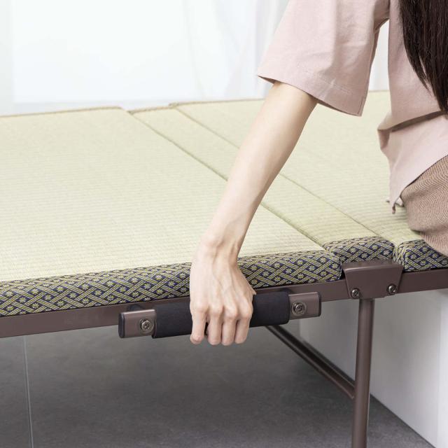 爽やかな香りの天然い草の折りたたみベッドです。畳は、ホルムアルデヒドなどの有害な気体を吸着・除去する効果があるので、小さなお子さまやアレルギーが気になる方にも安心してご使用いただけます。また、調湿機能・消臭効果があり、汗ばむ暑い季節もさらっと快適です。