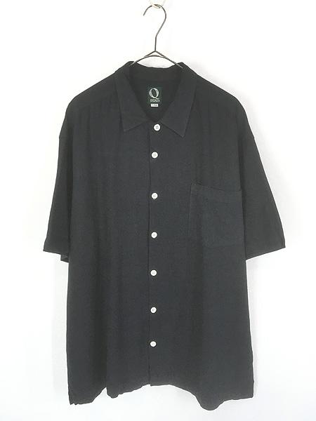 古着 90s Que 無地 ソリッド ブラック リネン レーヨン 半袖 ボックス シャツ XL