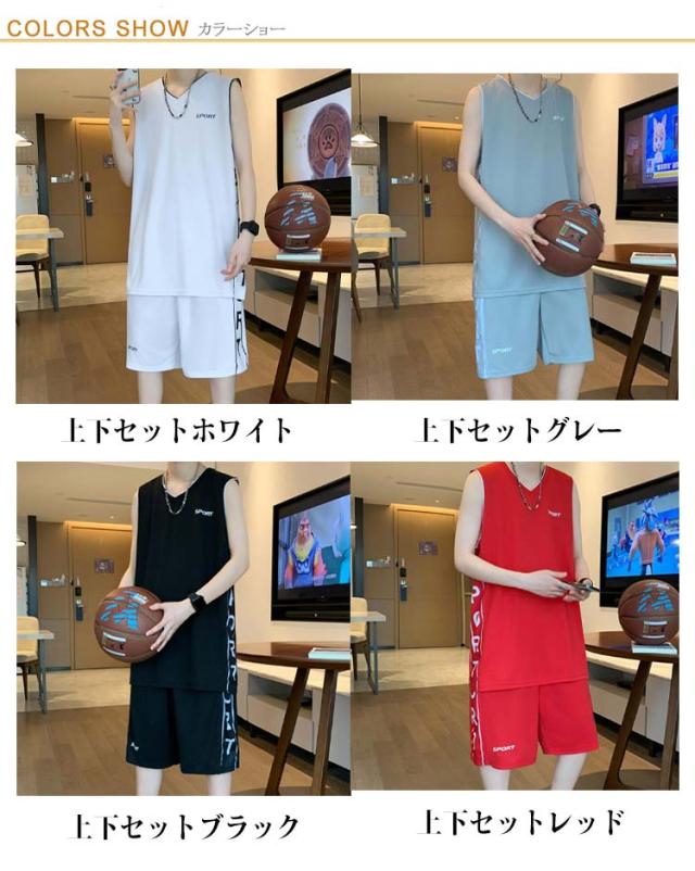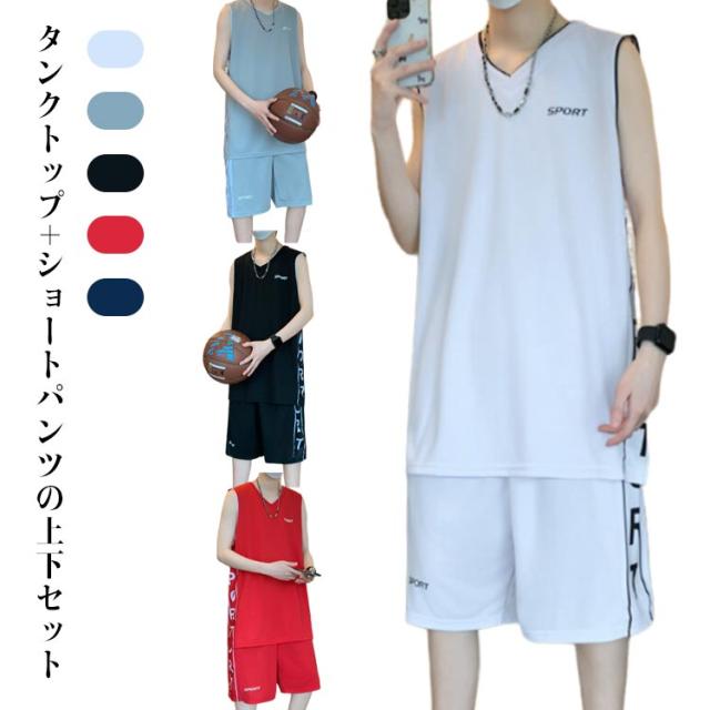 バスケットボール Vネック バスケット ジャージ タンクトップ ショートパンツ ショーツ セットアップ タンクトップ ウェア ノースリーブ タンクトップ メンズ ユニフォーム スポーツウェア 練習着 部活 ジム