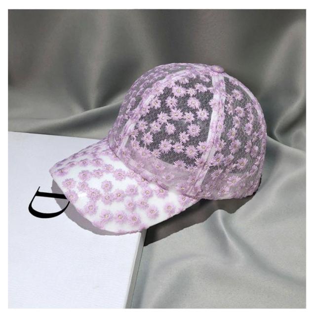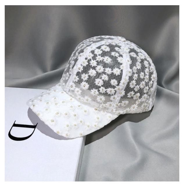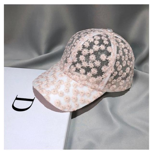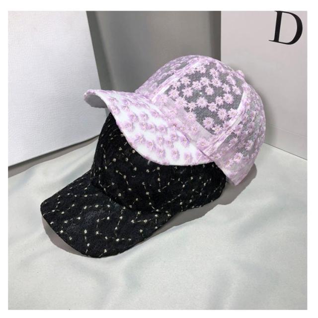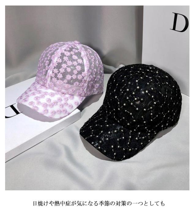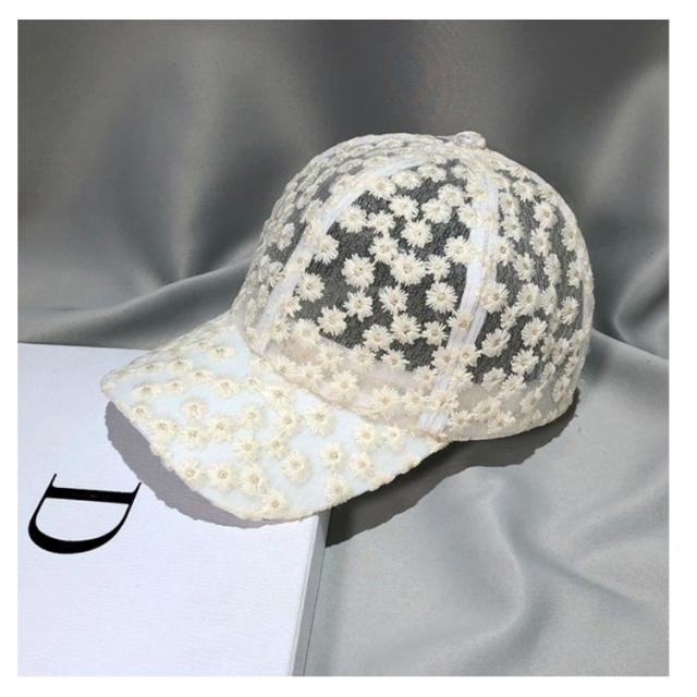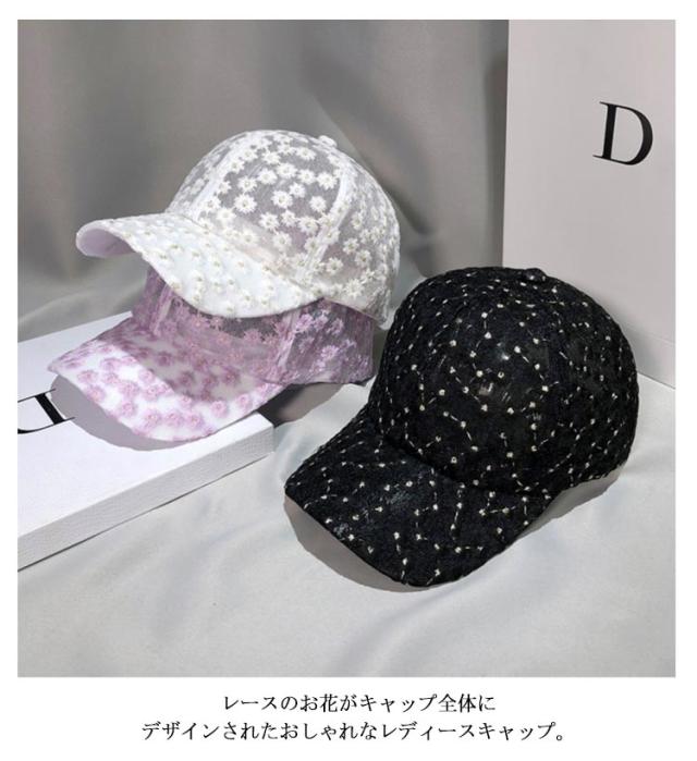 | 花柄デザインのおしゃれなレディースキャップ レースのお花がキャップ全体にデザインされたおしゃれなレディースキャップ。 日焼けや熱中症が気になる季節の対策の一つとしても | |