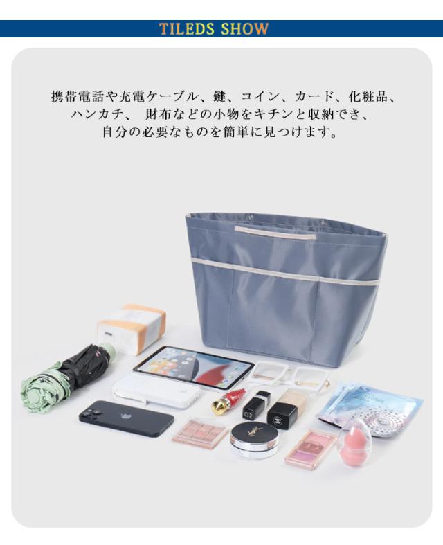 | 大容量のバッグインバッグがバッグの中の小物たちをしっかり収納します。 携帯電話や充電ケーブル、鍵、コイン、カード、化粧品、ハンカチ、 財布などの小物をキチンと収納でき、自分の必要なものを簡単に見つけます。 濡れた手で触ってしまっても安心の撥水加工生地。 自立型デザインで、形が崩れにくいです。 厚くない、重さもなく設計で、 頻繁に出張、旅行、キャンプに行く方におすすめするバックインバックです。 | |