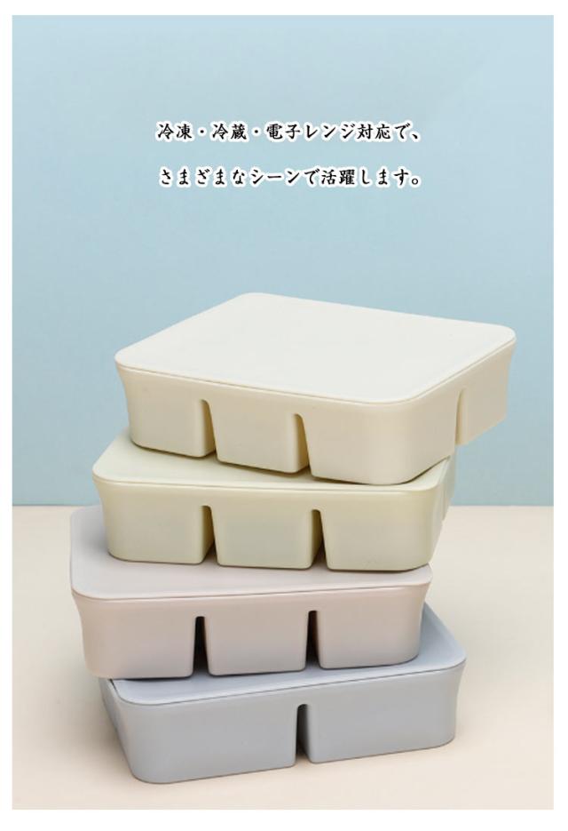 | シリコン製の柔らかい素材だから、力を加えなくてもするっと簡単に取り出せます。 蓋の密封性が強く、食品の漏れを効果的に防止することができる。 冷凍・冷蔵・電子レンジ対応で、さまざまなシーンで活躍します。 離乳食はもちろん、ダイエット用の小分け保存や作りおきお惣菜にもぴったりの万能トレーです! | |