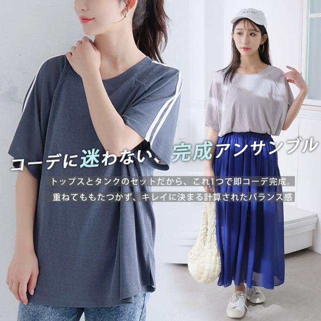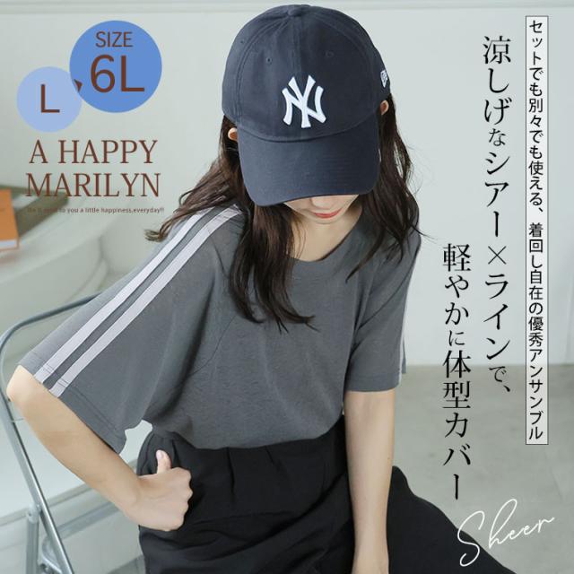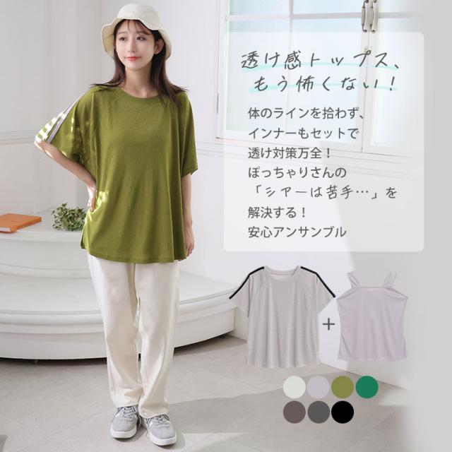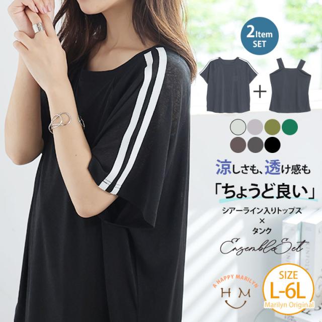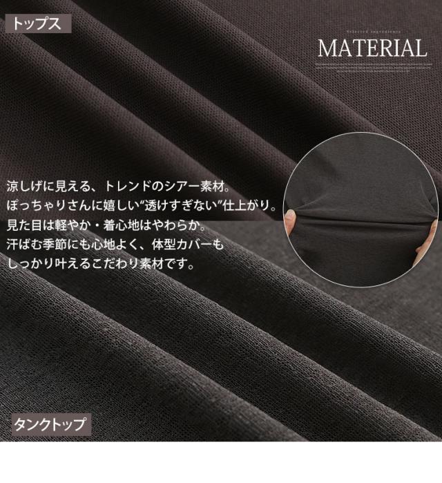 新作 大きいサイズ レディース アンサンブル | 丁度良い透け感 透けない涼し気シアー ライン入り トップス & タンクトップ アンサンブル [500049] LL 3L 4L 5L 6L