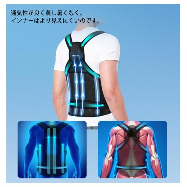 | 猫背矯正ベルト 高粘着マジックテープ、自由調節でまます。 軽くて通気性があり四季を通じて着ることがでまます。 通気性が良く蒸し暑くなく、インナーはより見えにくいのです。 ダブルYクロスクロスクロステープ、360°貼り合せます。 | |