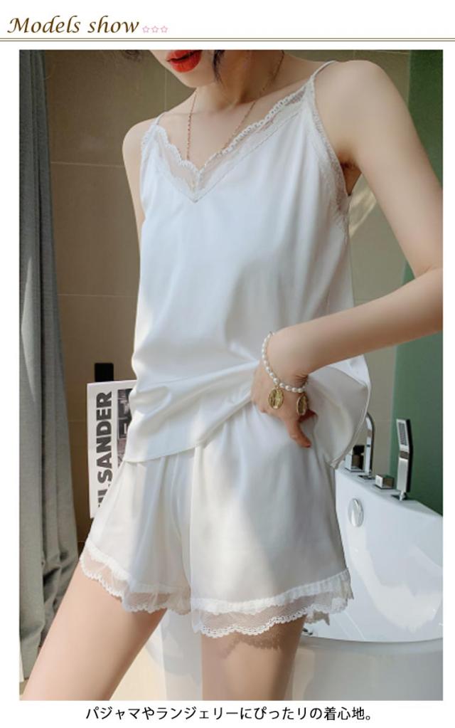 上下セット パジャマ ランジェリー 大人 ベビードール インナー キャミソール シルクタッチ キャミソール レース ルームウェア ショートパンツ 下着 セクシー サテン 可愛い ギフト 光沢 春夏 夏 夏用