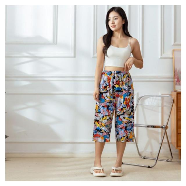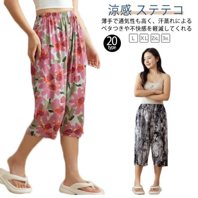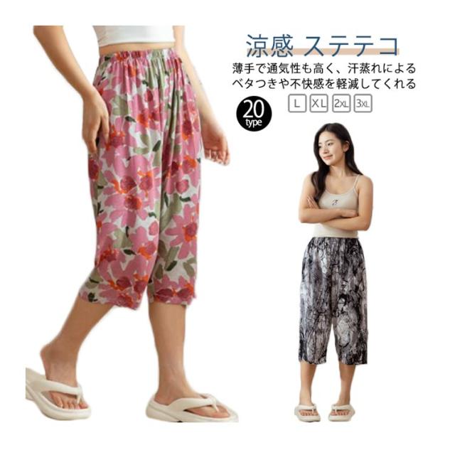 速乾 涼しい レディース パジャマ メンズ ワイドパンツ ナイトウェア 総柄 すててこ 夏 ステテコ 綿 リラックスパンツ 伸縮性 蒸れない 7分丈 カラフル 薄手 植物柄 ユニセックス 涼感 ハーフパンツ 部屋着 ルームウェア カジュアル