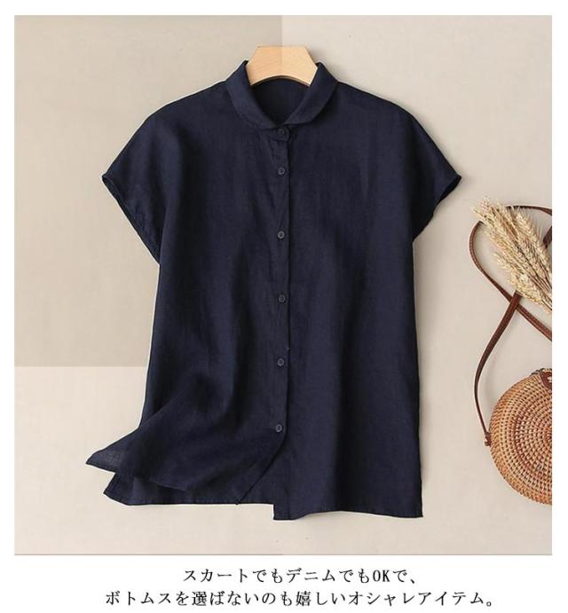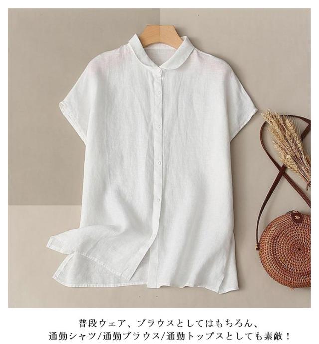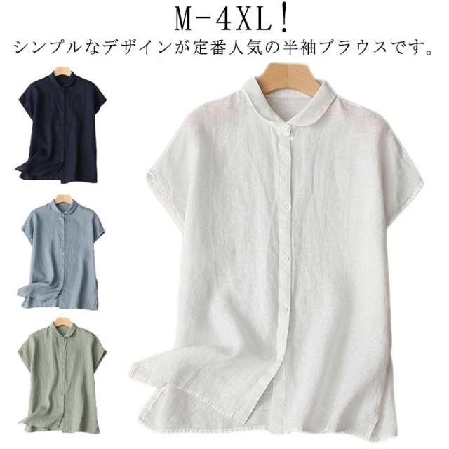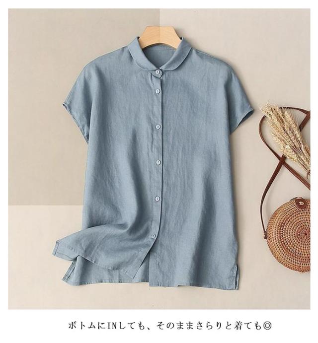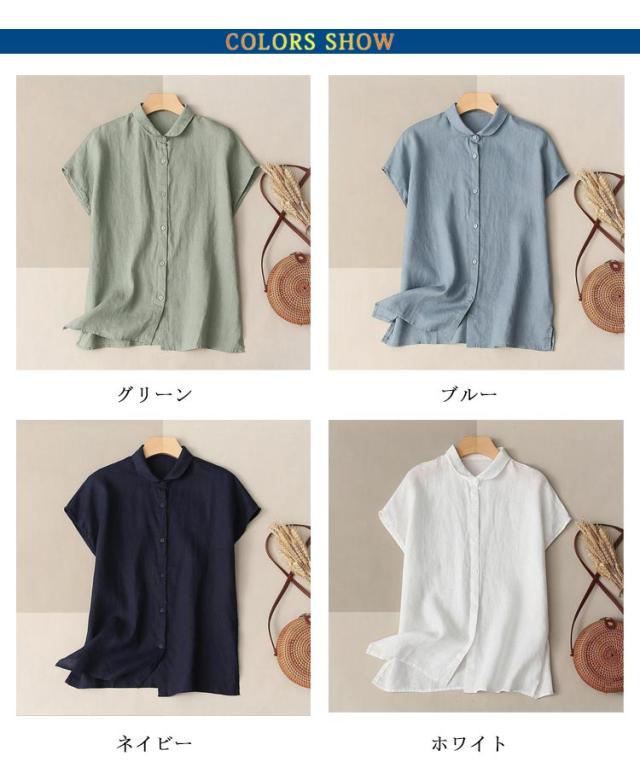 前開き 無地 ブラウス シャツ 半袖 森ガール 綿 シャツブラウス トップス 薄手 大きいサイズ きれいめ カジュアル 通勤 シンプル 涼しい おしゃれ 着回し