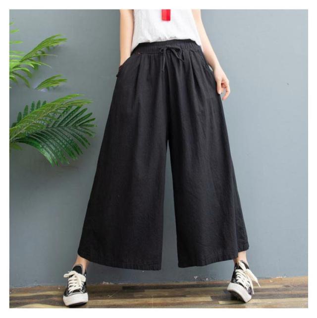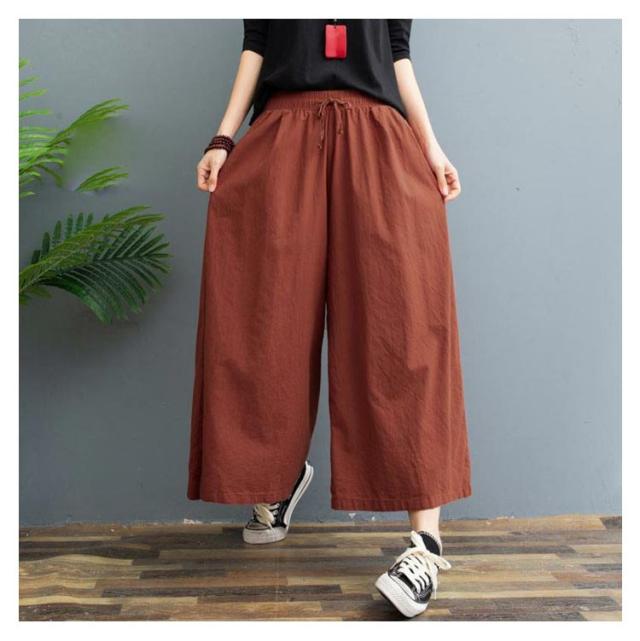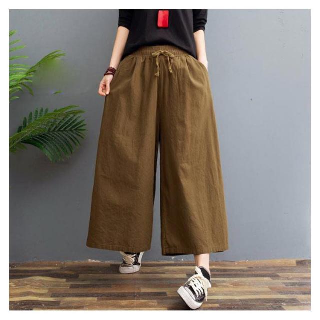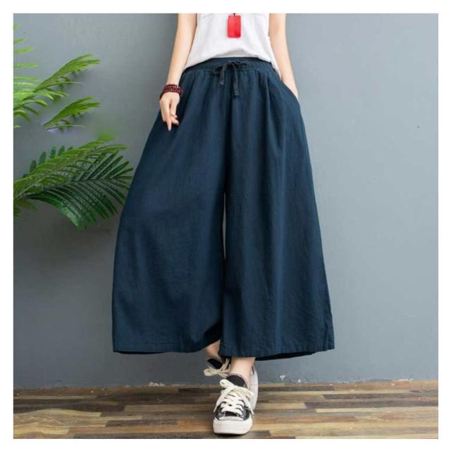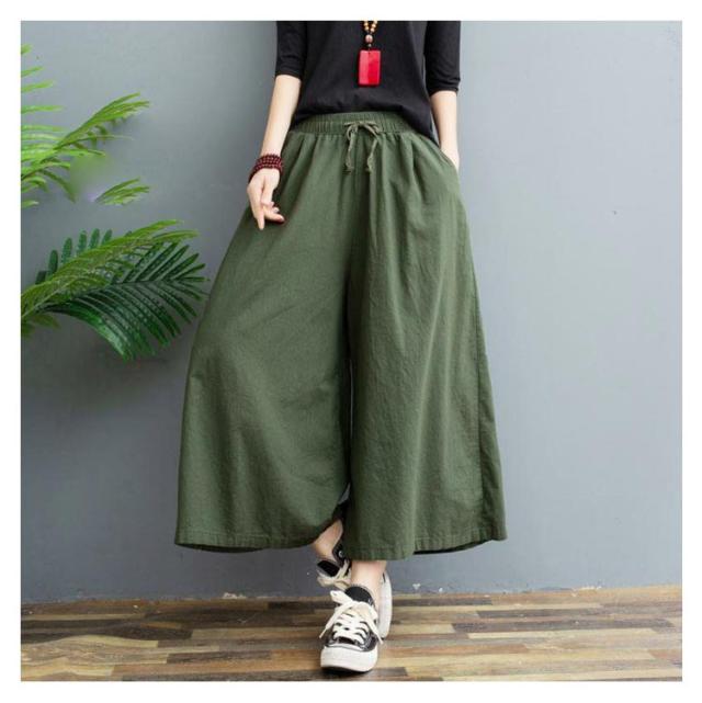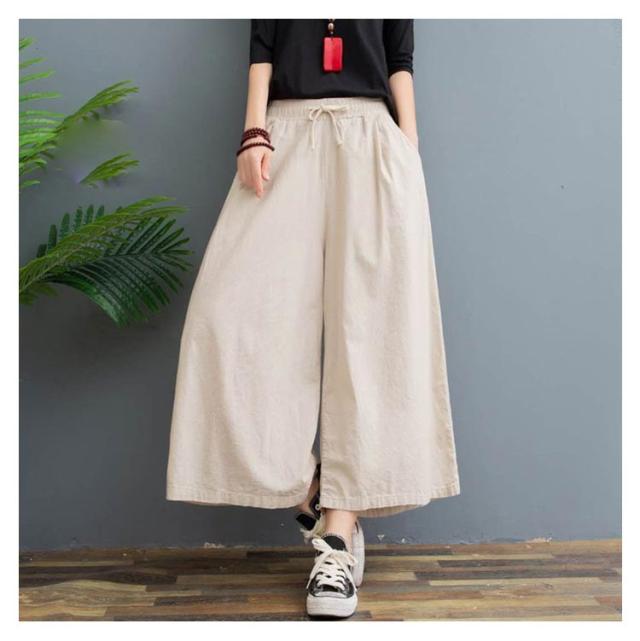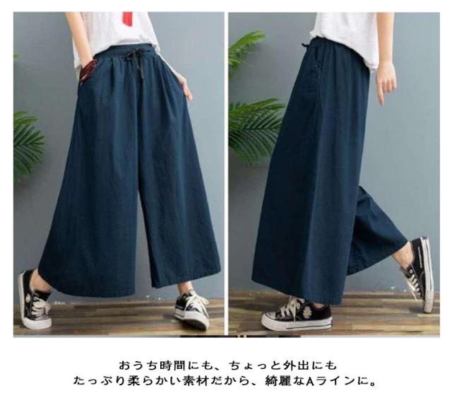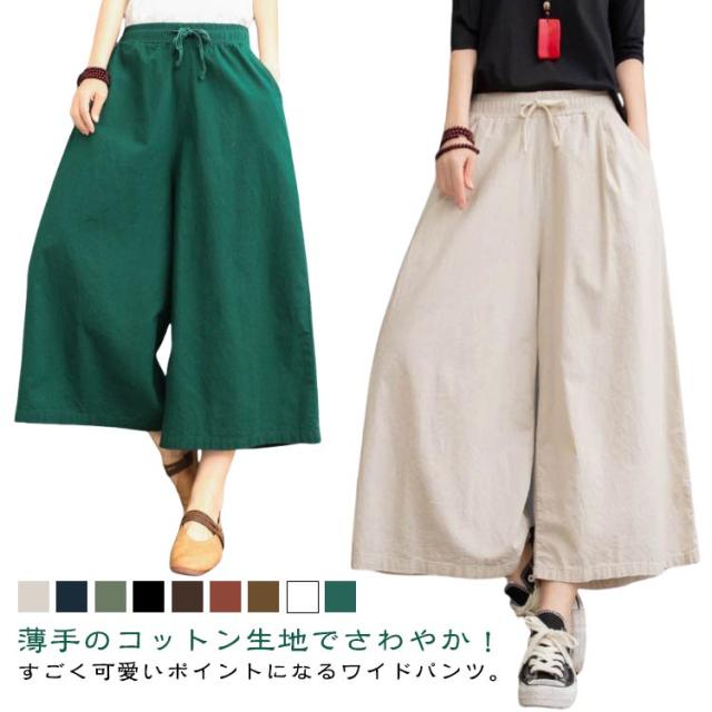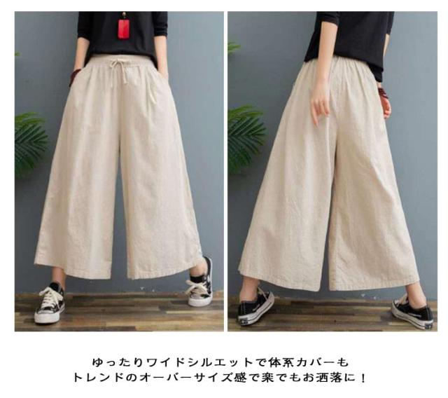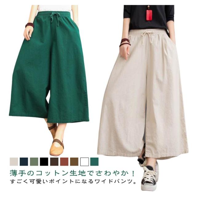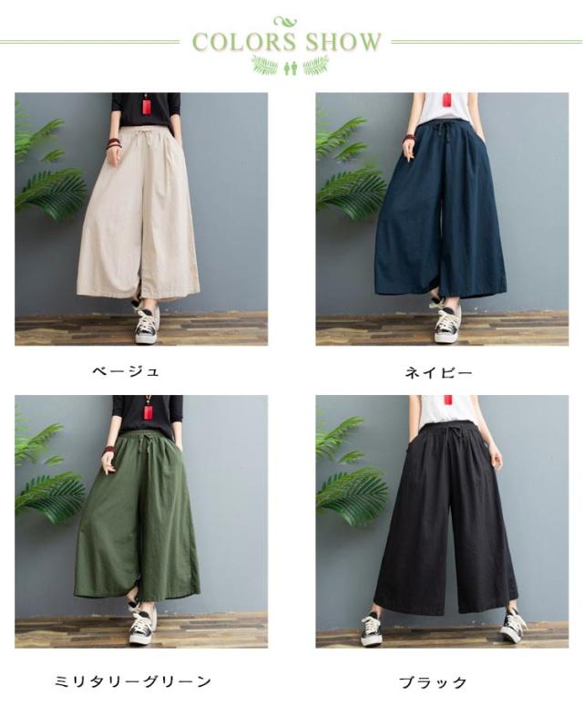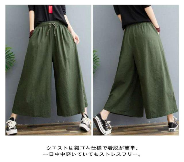 ガウチョパンツ レディース イージーパンツ 綿麻パンツ スカーチョ ワイドパンツ コットンリネン スカンツ ボトムス ストレッチ きれいめ 大きいサイズ カジュアル 八分丈 薄手 フレアパンツ 涼しい 体型カバー 大人 ナチュラル ゆったり ワイドパンツ 通気性 無地 綿
