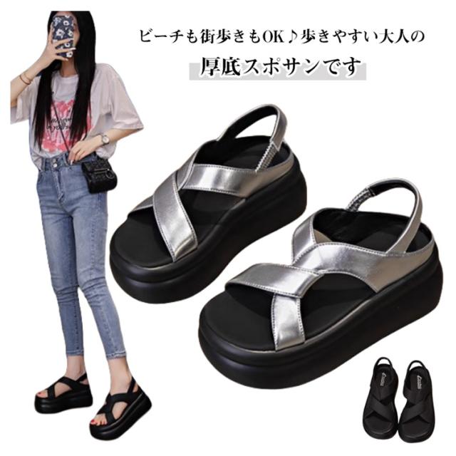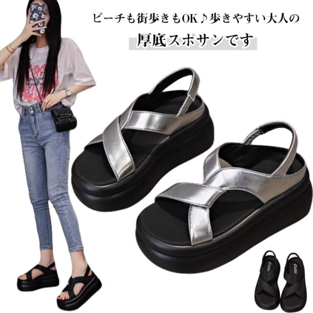 | ビーチも街歩きもOK♪歩きやすい大人の厚底スポサンです。 アッパーには高見えするPUレザー素材を使用します。 柔らかいインソールが足に優しくフィットし、長時間歩いても疲れにくい快適な履き心地です。 約7cmの厚底ソールでスタイルアップを叶えながら、歩行時の衝撃を吸収し、足への負担を軽減します。 靴底には凹凸のある滑り止め加工を施し、安全性にも配慮しました。 どんなコーデにも合わせやすいきれいめ×カジュアルデザインで、ワンピースにもパンツにも相性抜群! | |
