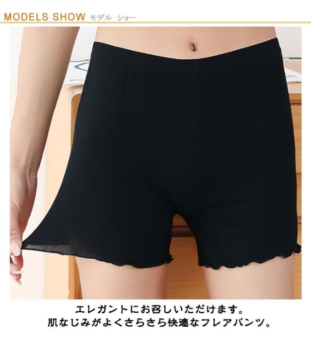 | 見えてもかわいいペチパンツ。 エレガントにお召しいただけます。 肌なじみがよくさらさら快適なフレアパンツ。 より密度の高い生地を採用し上質な手触りに。 吸水性に優れているので汗でまとわりつくようなこともありません。 やわらかくさらさらとしたとても気持ちのよい肌触りの涼しい素材。 チラ見えが防止になるし、ロング丈のトップスから裾をチラ見せするのもお勧め。 定番のカラーはそのままに、 これからの時期にぴったりなカラーも追加になりました。 | |