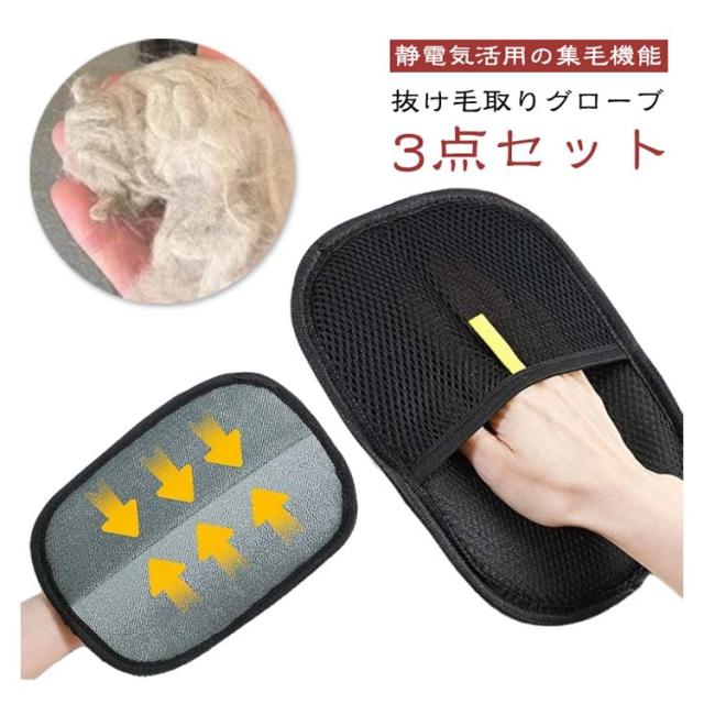 ペットクリーニング用品 手袋 抜け毛取り 猫用 らくらくブラシ ペット用 いぬ 通気性UP 猫の毛除去 ペット 毛抜け手袋 静電毛取り グルーミンググローブ ブラシ ブラシグローブ 犬 【3点セット】抜け毛グローブ ウサギ 小動物用