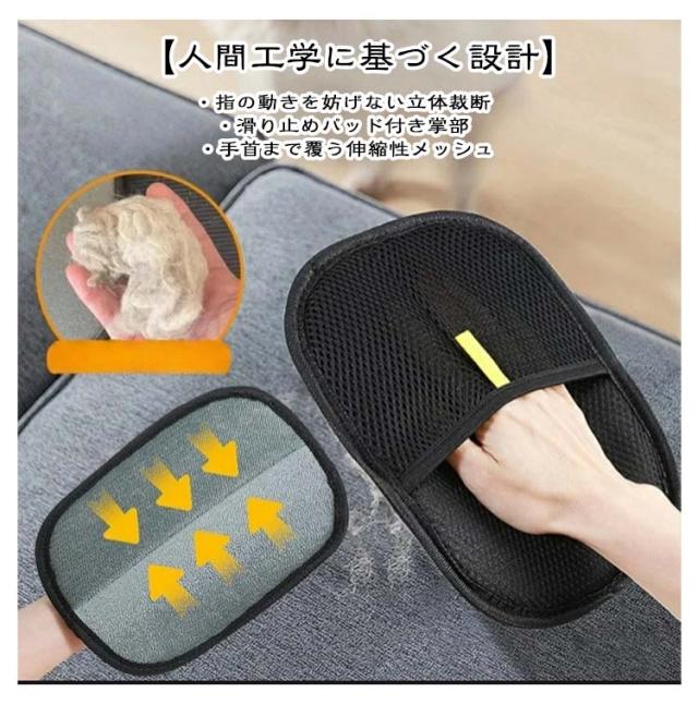 | 【抜け毛取りグローブ】【3点セット】 【静電気活用の集毛機能】 微細な静電作用で抜け毛を自動吸着 ・地肌に優しい極細繊維が絡まった毛も根元からキャッチ 【多様なペット対応】 ・猫/犬(超短毛種〜長毛種)/ウサギ/ハムスター ・生後3ヶ月以上の成長段階に対応 【人間工学に基づく設計】 ・指の動きを妨げない立体裁断 ・滑り止めパッド付き掌部 ・手首まで覆う伸縮性メッシュ 【即時メンテナンス性 】・毛玉の塊を剥がすだけで清潔に ・中性洗剤で丸洗い可能(週1回推奨) 【安心設計のポイント】 ・爪引っ掛かり防止の丸み加工縁 ・皮膚摩擦軽減のソフトタッチ表面 ・抗菌防臭加工(24時間効果持続) 【推奨使用タイミング】 ・換毛期のブラッシング(1日10分目安) ・外出前のクイックケア(3分間で全身対応) ・就寝前のスキンシップタイム 【効果的な活用例 】・ソファの隙間掃除に逆手装着 ・猫タワーの柱磨きに二重装着 ・車内シートのペット毛回収 | |