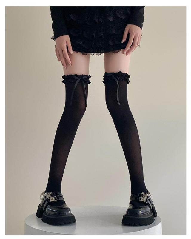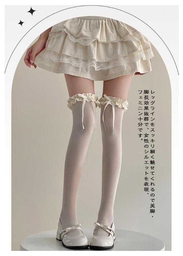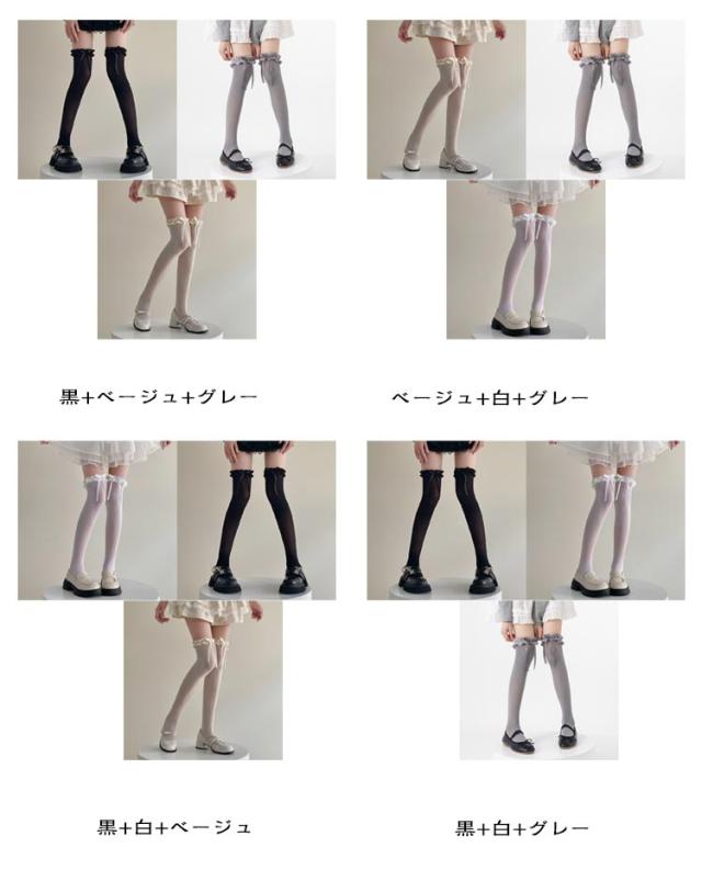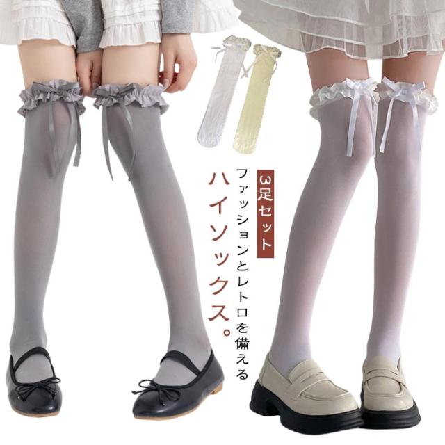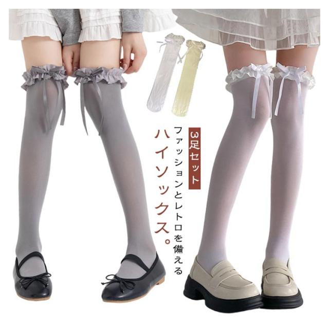 女の子 膝上 高校生 フリル 靴下 リボン レディース 3足セット ロングソックス ニーハイソックス 無地 シンプル 学生 女子高生 女子中学生 夏用 中学生 ガールズ 3足セット 女子 おしゃれ 可愛い ロング ソックス 春夏秋 くつした