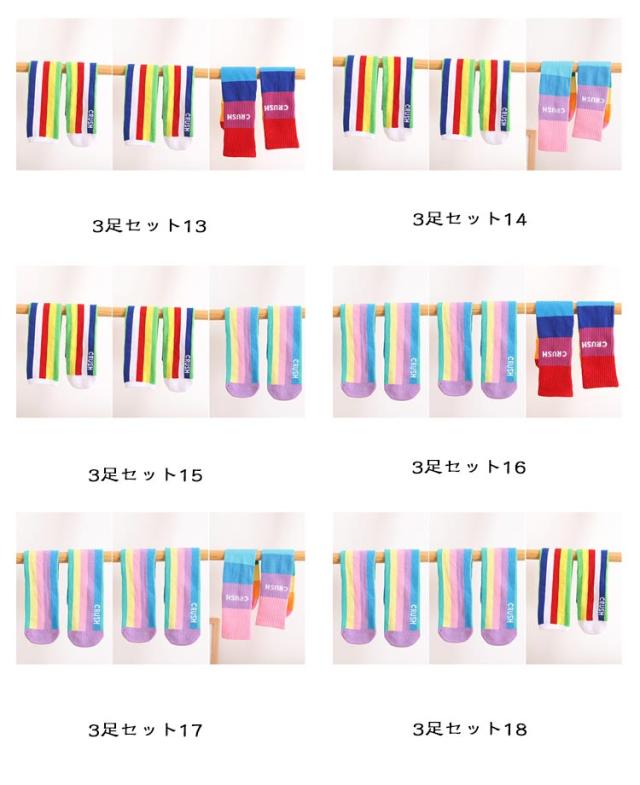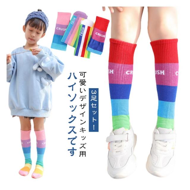 3足セット!ハイソックス くつした グラデーション 靴下 小学生 子供用 キッズ ライン入り 保育園 3足セット!ハイソックス ジュニア ロゴ カジュアル おしゃれ 幼稚園 かわいい 女の子 カラフル 春夏秋冬 ガールズ かわいい 薄手
