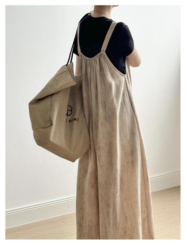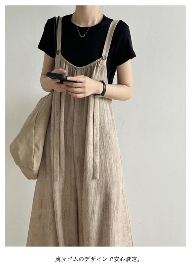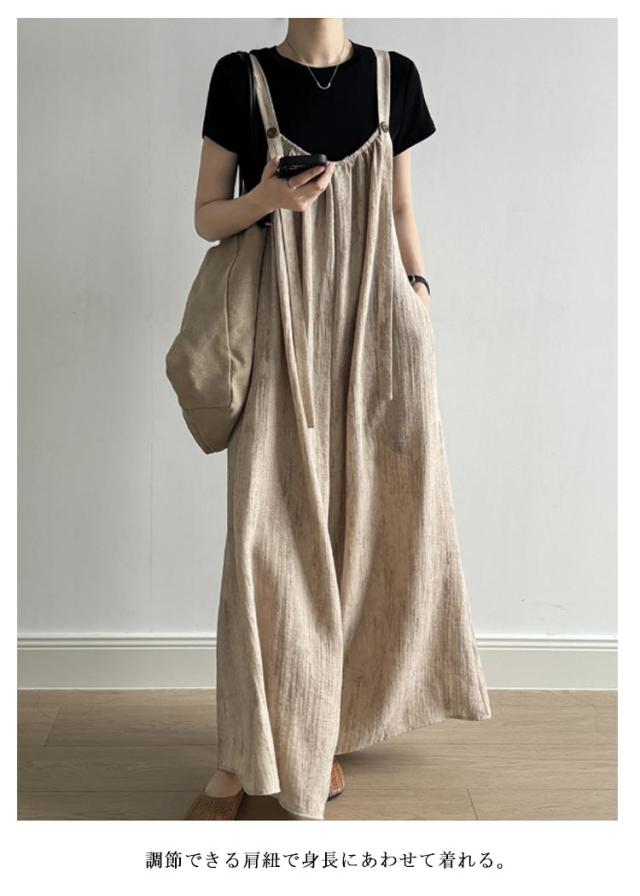 | 高級感のある生地が大人っぽくコーデを惹き立で、上品な雰囲気に! お洒落さを損なわない落ち感で、女性らしいシルエットにしてくれる。 ダボっとしたゆるさがこなれ感を演出してくれるから、 いつものトップスと合わせてお洒落さんに。 調節できる肩紐で身長にあわせて着れる。 胸元ゴムのデザインで安心設定。 | |