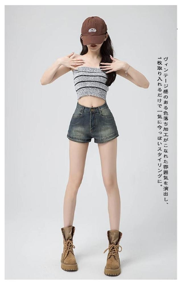| 今っぽくキマる! トレンド感あふれるデニムショートパンツ 旬の着こなしに欠かせないデニムショートパンツ。 ヴィンテージ感のある色落ち加工がこなれた雰囲気を演出し、1枚取り入れるだけで一気に今っぽいスタイリングに。 コンパクトな丈感が軽やかで、春夏のアクティブな日常にもぴったり。 カジュアルなのに洗練された印象を与える、今季マストな一本です。 脚長効果のあるハイウエスト×コンパクト丈で、スタイルアップしながら抜け感のある印象に。 | |