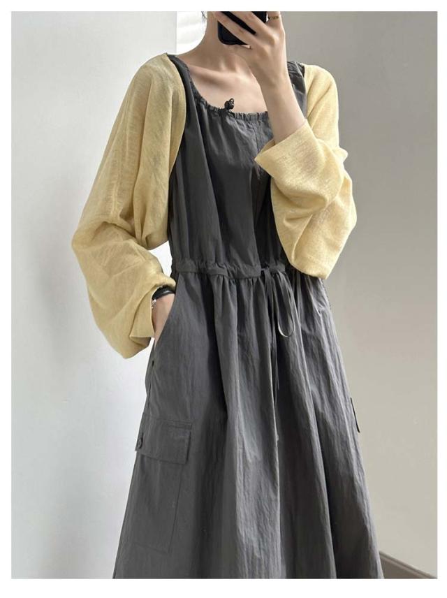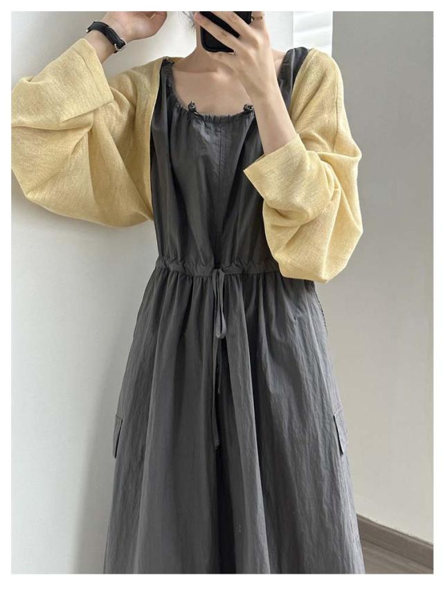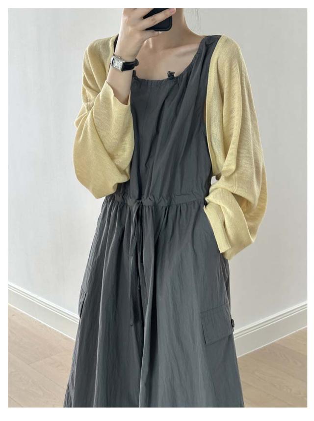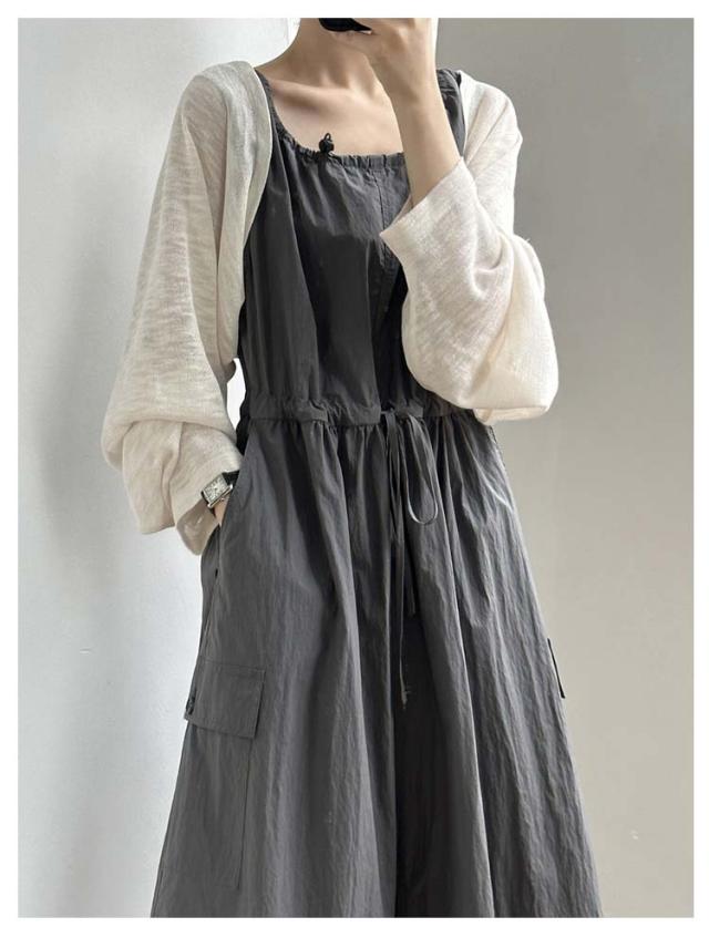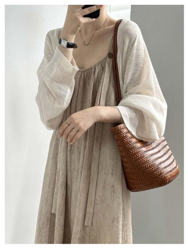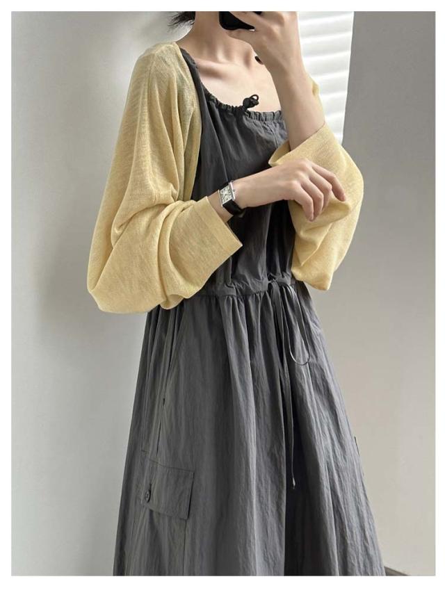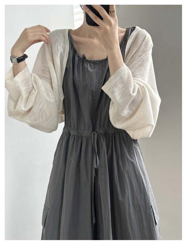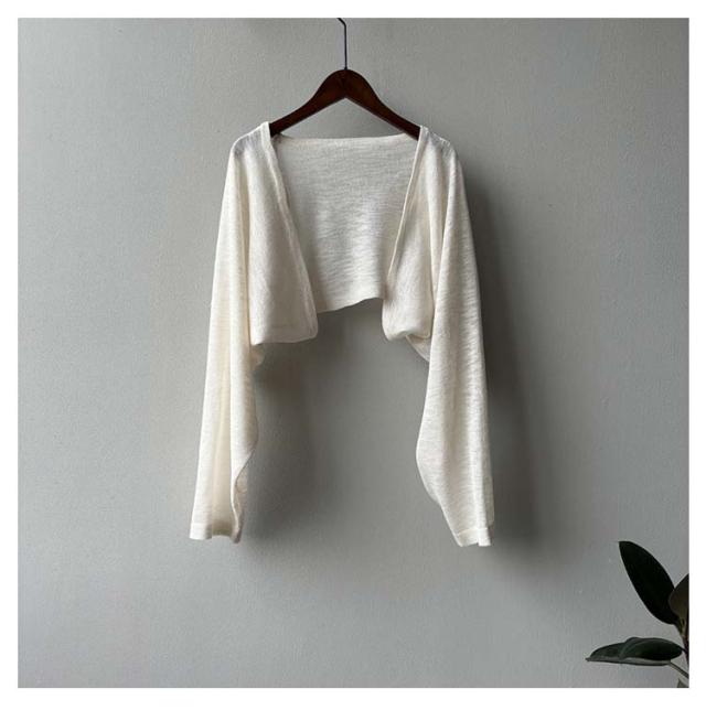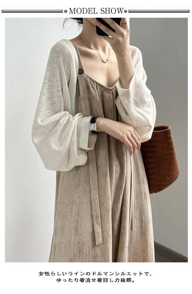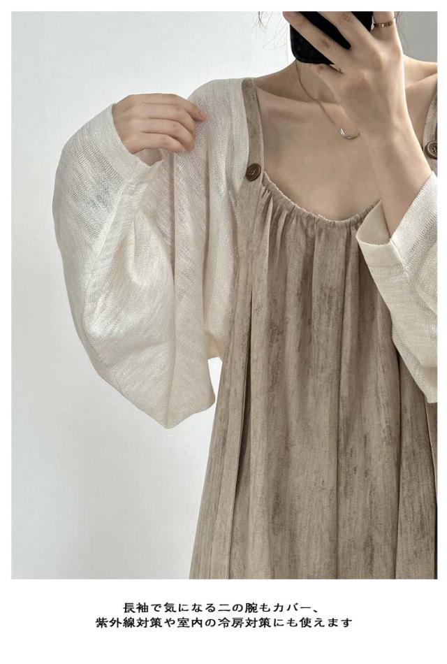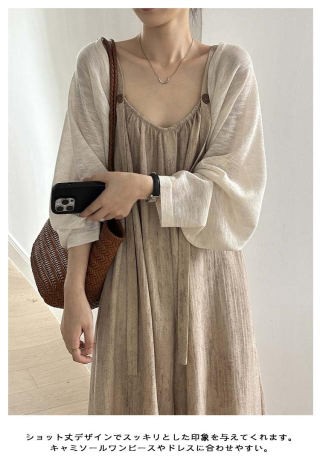 | 透け感のある長袖ボレロ 女性らしいラインのドルマンシルエットで、ゆったり着流せ着回し力抜群。 長袖で気になる二の腕もカバー、紫外線対策や室内の冷房対策にも使えます♪ ショット丈デザインでスッキリとした印象を与えてくれます。キャミソール、ワンピースやドレスに合わせやすい。 | |