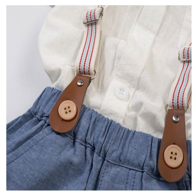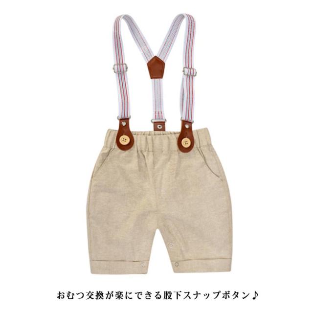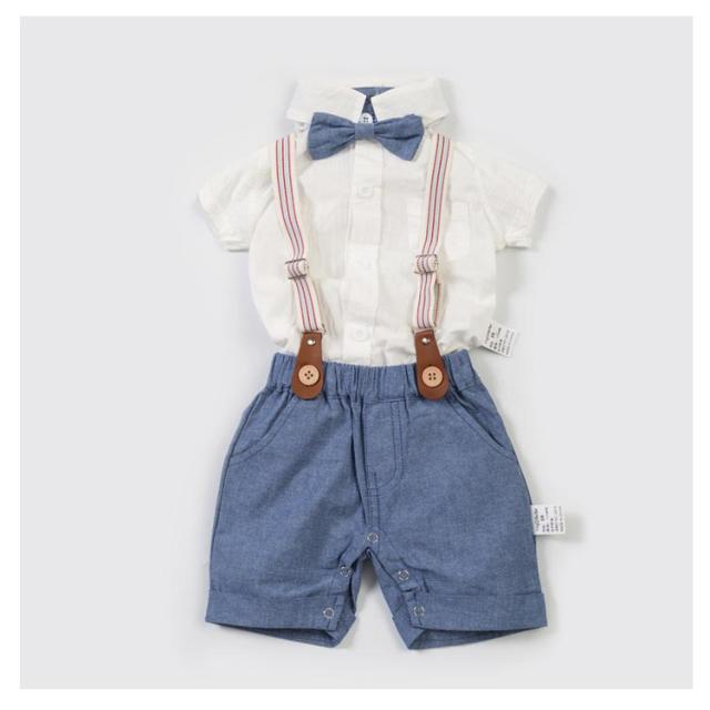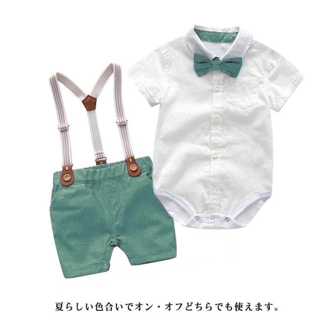 ロンパース 発表会 男の子 ベビー服 2点セット フォーマル 上下セット ベビー服 ベビースーツ セットアップ 蝶ネクタイ付き 半袖シャツ+サスペンダー付きパンツ 入園式 七五三 ベビーウェア 結婚式 半ズボン 初節句