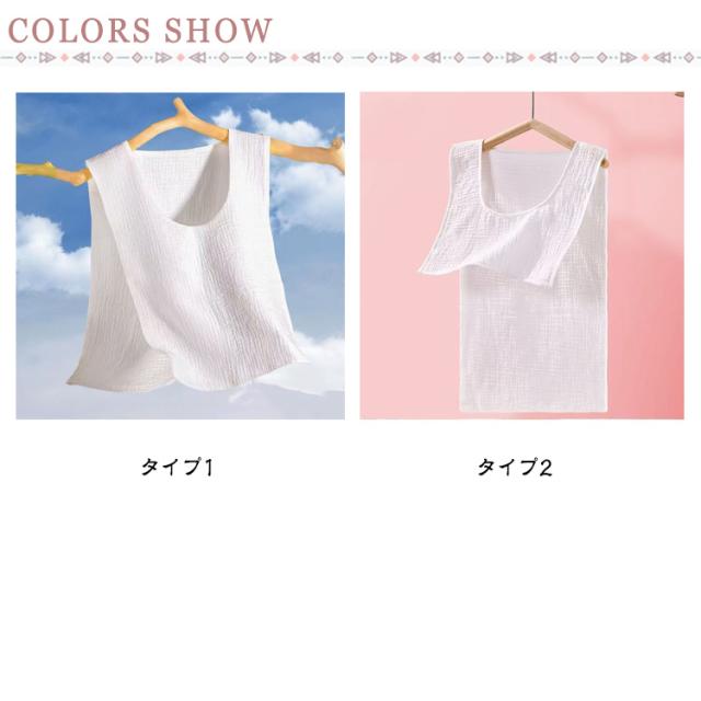 | 服を着たままサッと脱げる!汗取りインナータンクトップ。 ガーゼで肌触りふんわりやわらか。吸水速乾性に優れたコットン素材で、さらっと快適な肌触り♪ 汗染み予防としてはもちろん、汗をかいても丸ごと脱げるサイドオープンシルエット◎ 下着の下に着用すると、より吸汗してくれます◎ 汗で悩まされる様々なシーンに!お出かけや通勤通学で背中の汗染みが気になる、汗でムレて臭いが気になる、汗をかいた後背中が冷たい。おうちでのリラックスタイム、運転、スポーツシーンなどにも! | |