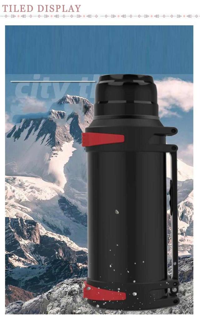 | 1500ml、2000ml、2500ml、3000mlの大容量マグボトル。 保冷力と保温力に優れており、ドリンクの温度を長時間キープできます。 密閉性も高く、傾けたときに漏れにくいのもポイントです。 運動中に素早く水分補給したい時にもびったり。 コップ+肩掛けストライプ+ケース付き、頑丈なつくりなので、キャンプや登山など、アウトドアシーンでの使用にも向いています。 | |