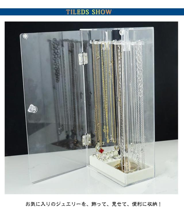 ジュエリー 絡まない ジュエリーケース イヤリング ピアス ジュエス 透明 アクリルケース ネックレススタンド ネックレスケース 回転式ネックレスケース ネックレス収納 最大72本 アクセサリーケース クリア ディスプレイ