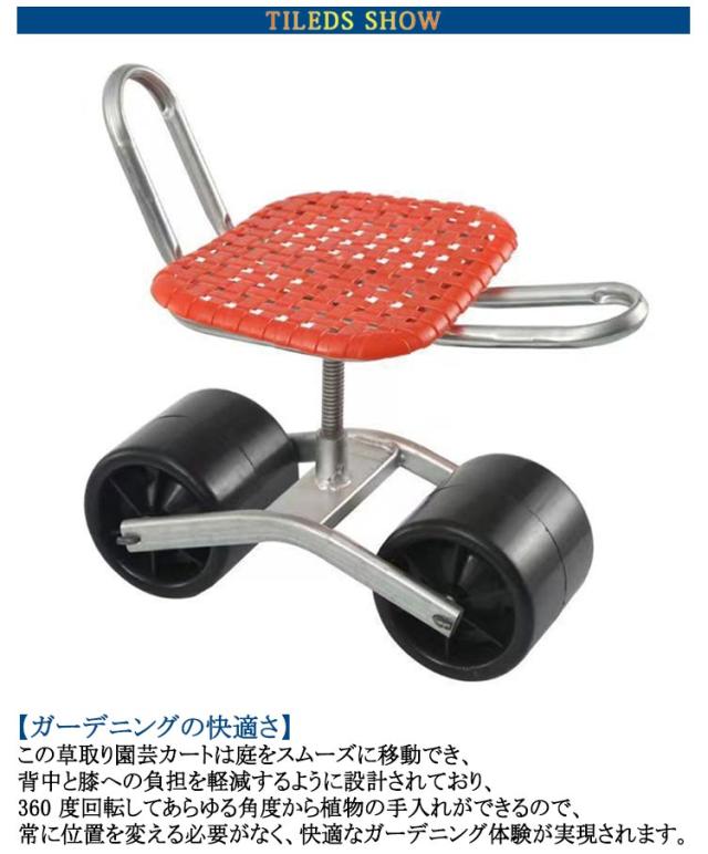 座面 農作業 椅子 ガーデニングカート 背もたれ付き 台車 高さ調節 腰掛け 360°回転 車輪付き 座れる 園芸用カート ガーデンカート キャスター付き 腰掛け台車 作業カート 横移動 農作業 作業椅子 作業イス タイヤ付き 作業用