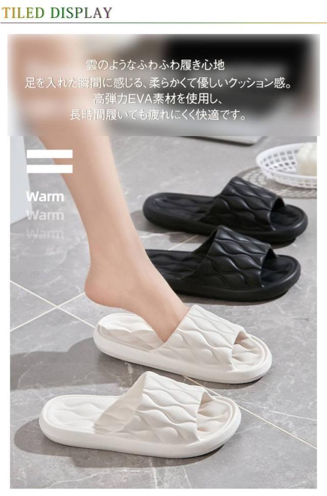| 雲のようなふわふわ履き心地 足を入れた瞬間に感じる、柔らかくて優しいクッション感。高弾力EVA素材を使用し、長時間履いても疲れにくく快適です。 浴室でも滑りにくい 靴底には滑り止め加工が施されており、浴室や洗面所でも安心してご使用いただけます。濡れても乾きやすく、お手入れも簡単。 厚底でしっかりサポート 厚底デザインで衝撃吸収性に優れ、歩くたびに足裏を優しく包み込みます。腰や足の負担も軽減。 通気性も◎ 通気性の良いデザインで、蒸れにくく夏場でも快適。室内外問わず、様々なシーンで大活躍します。 家族で使えるユニセックスデザイン シンプルでおしゃれなデザインは、男女問わずどなたでも使いやすく、カップルや家族でお揃いもおすすめです。 | |