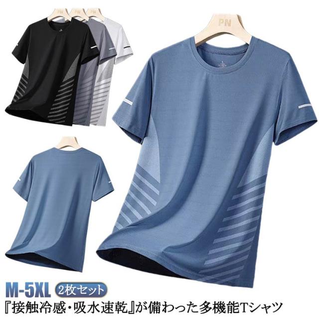 接触冷感 接触冷感 ランニング 吸汗速乾 メンズ 半袖Tシャツ スポーツ クルーネック ゆったり ティーシャツ 爽快 接触冷感 Tシャツ カットソー 薄手 2枚セット トレーニング ジム 部屋着 夏 ストレッチ 父の日 トップス
