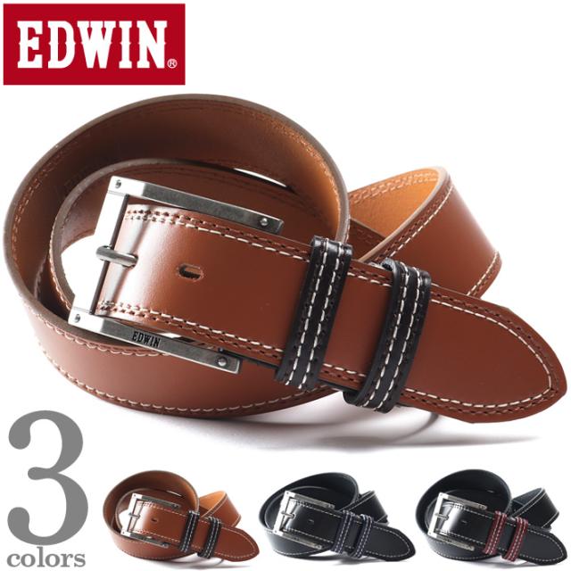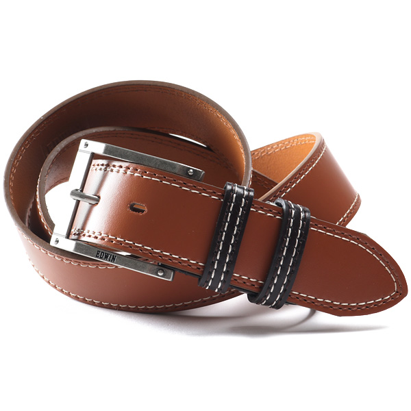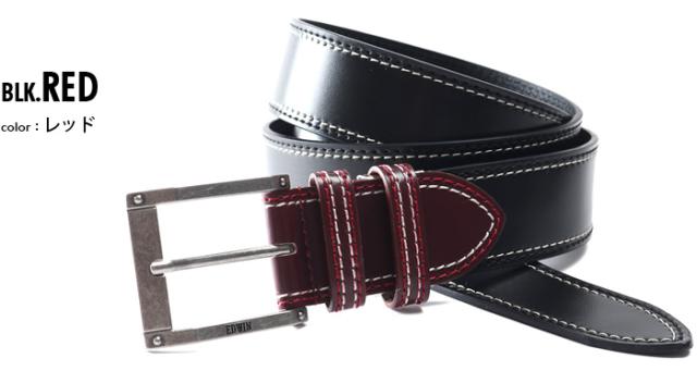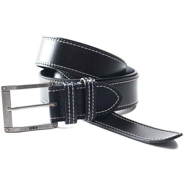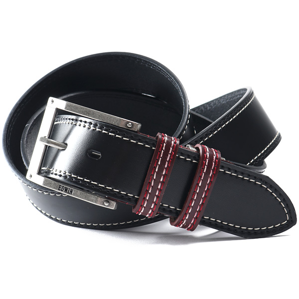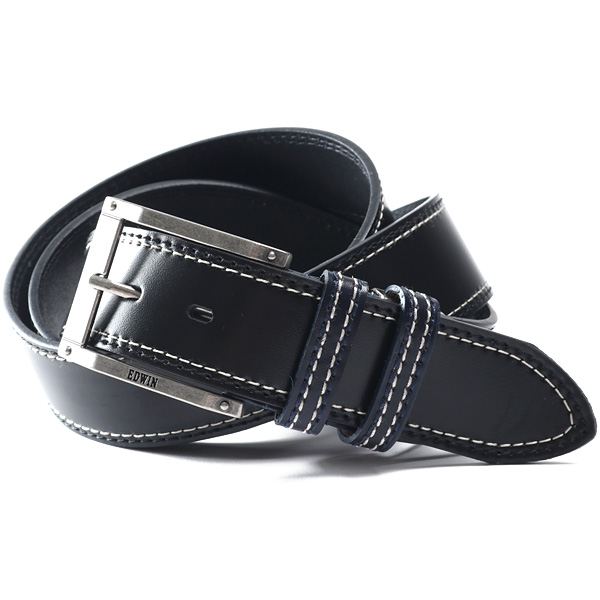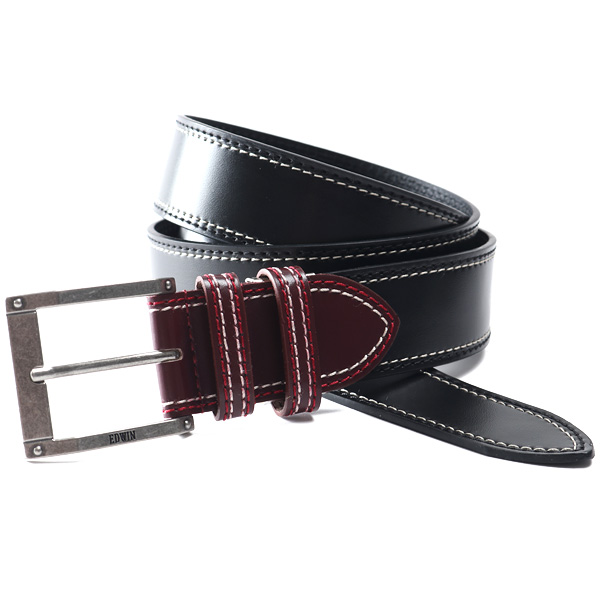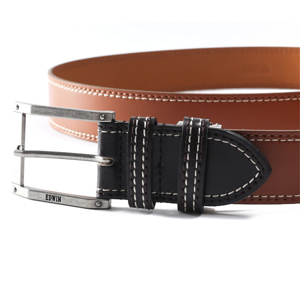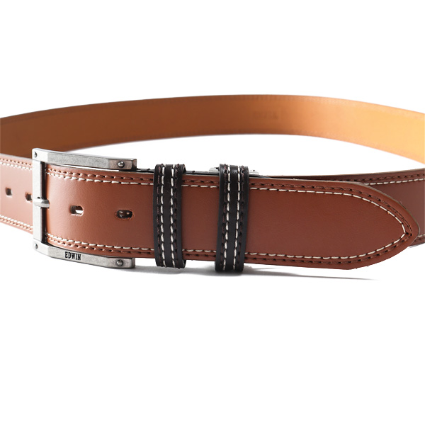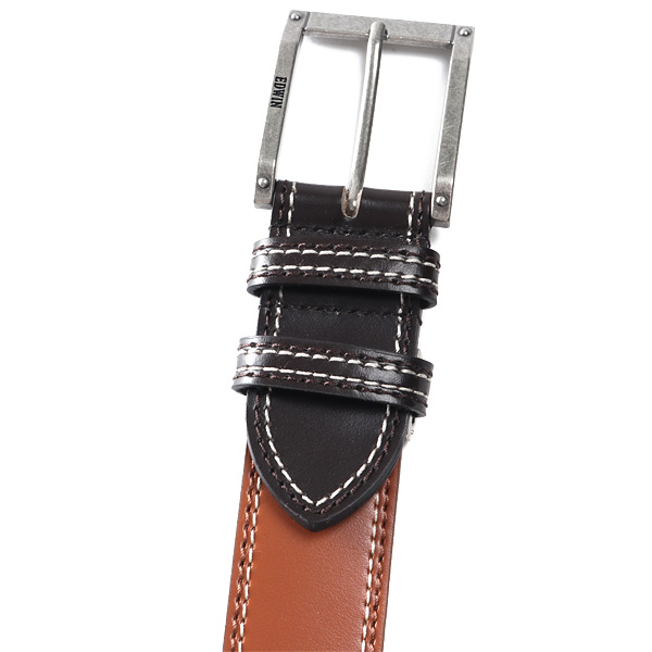 大きいサイズ メンズ EDWIN エドウィン コンビカラー ダブルステッチ レザー ベルト ロングサイズ 0111246