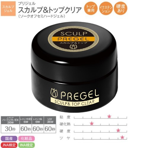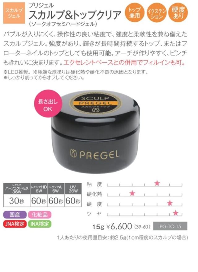 プリジェル PREGEL スカルプ&トップクリア 15g ツヤ 輝き 長さ出し スカルプ 国産ジェルネイル トップコート トップジェル クリアジェル ソフトジェルタイプ ソークオフタイプ 日本製 強度 柔軟性 粘度アップ