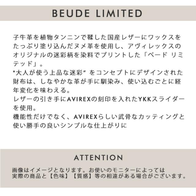 アビレックス アヴィレックス AVIREX BEUDE LIMITED ラウンドファスナー長財布 AX9102M メンズ レディース 本革 レザー ブランド 人気 迷彩 カモフラ